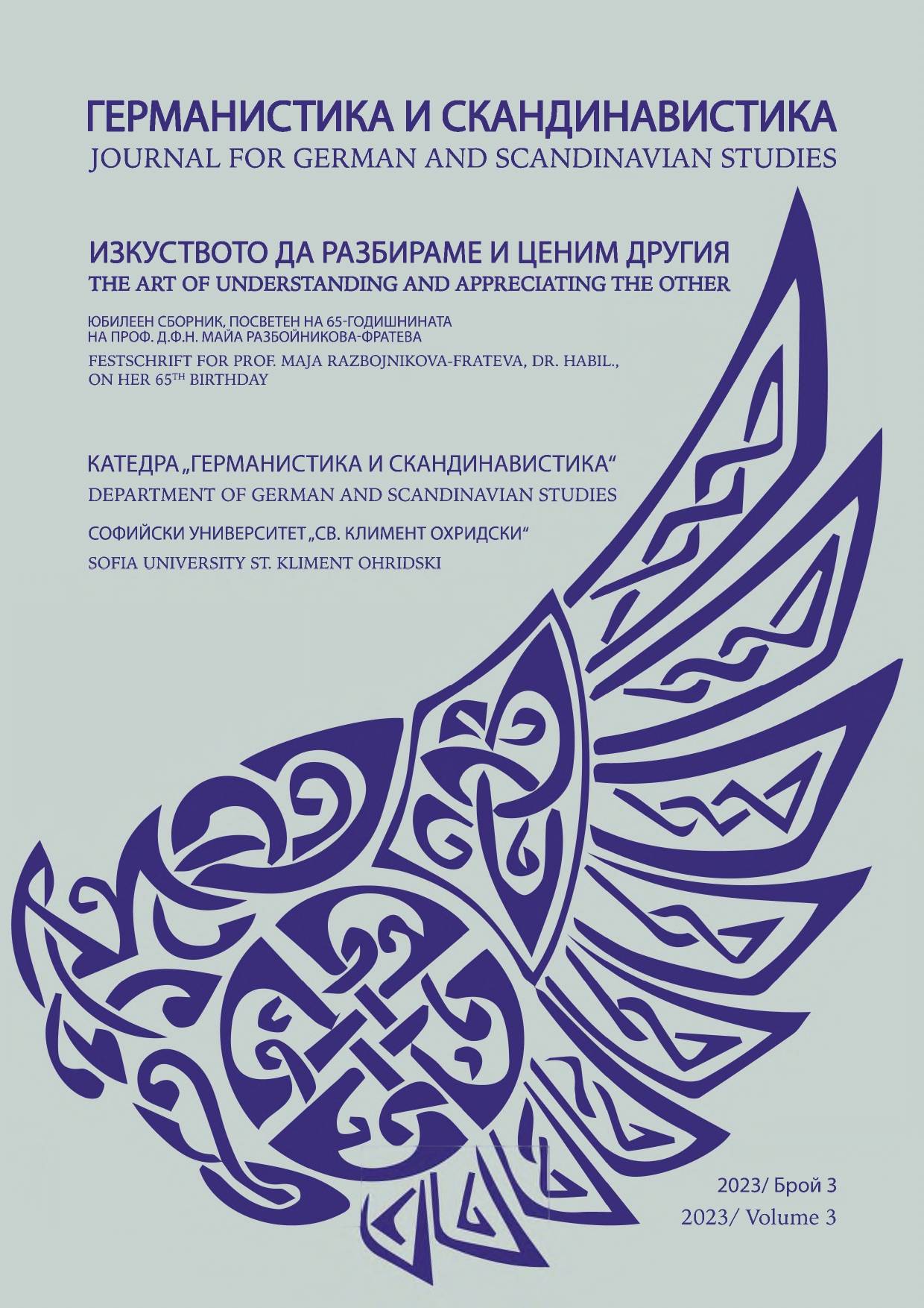 Извънреден тематичен брой, посветен на 100-годишния юбилей на специалност „Немска филология“ в Софийския университет „Св. Климент Охридски“, Том 1